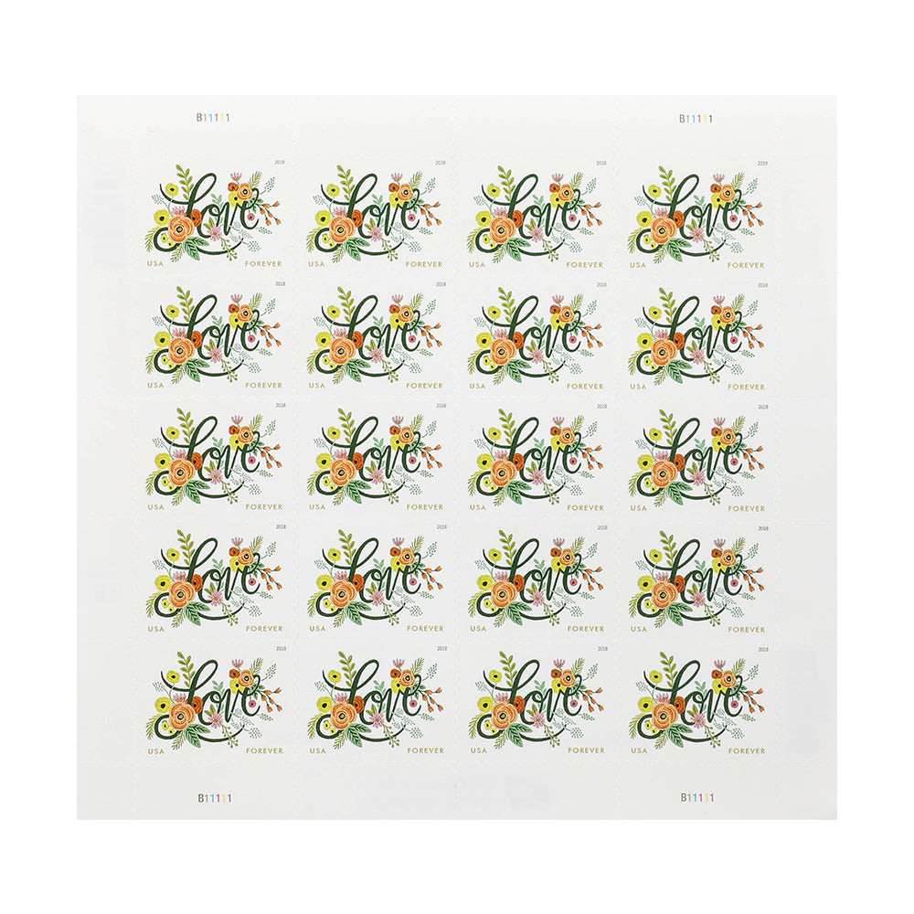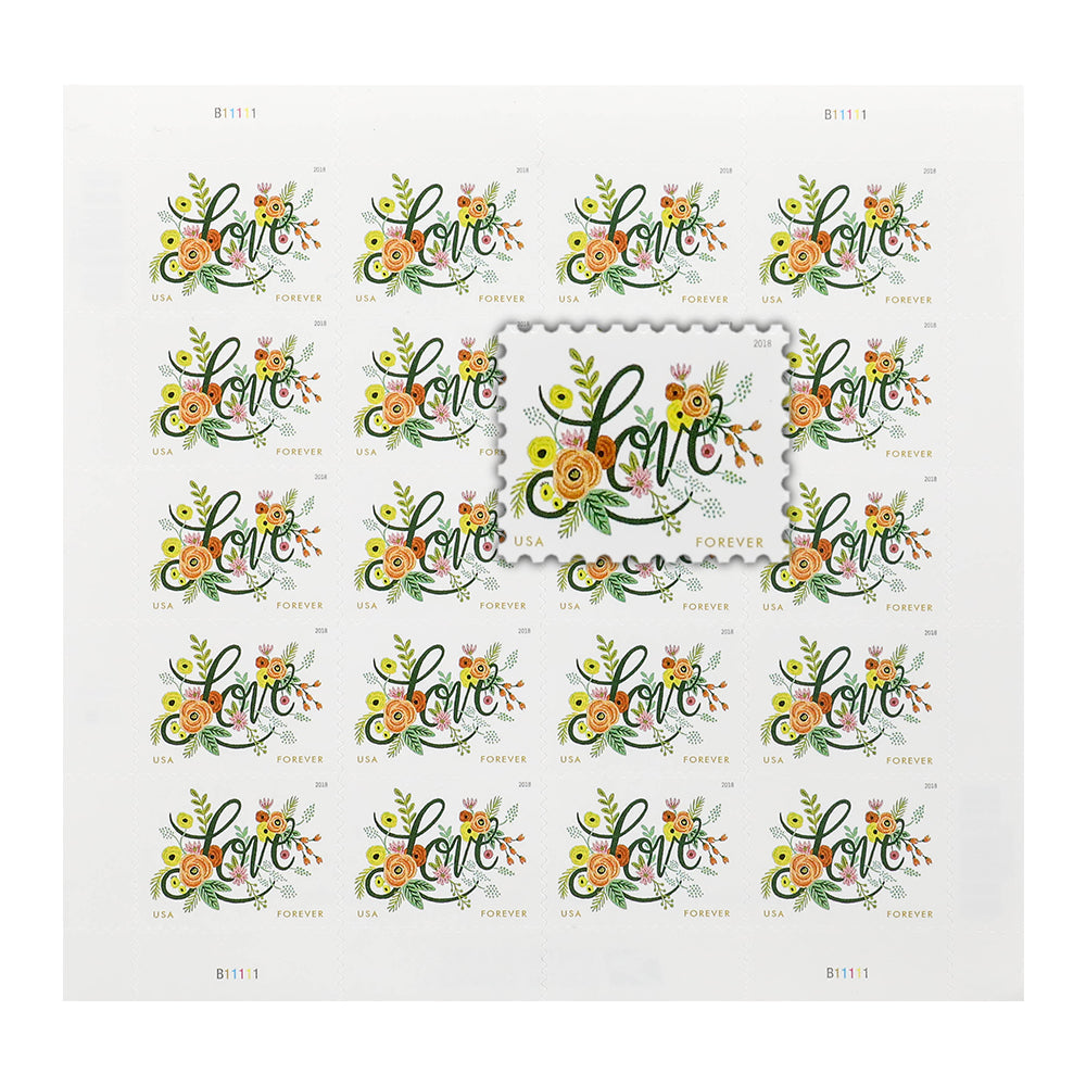 On January 18, 2018, in Phoenix, AZ, the Post Service issued the Love Flourishes First-Class Mail stamp (Forever) in one design, in a pressure-sensitive adhesive (PSA) pane of 20 stamps (Item 564700). Love Flourishes is the latest stamp in the popular Love series.